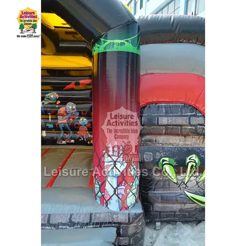 Leisure Activity ha una propria fabbrica ed è un produttore e fornitore di piccoli castelli gonfiabili multigioco infestati con scivolo in Cina. Questo prodotto presenta combinazioni di colori audaci, creando un ambiente emozionante. È molto adatto per feste di Halloween, festival autunnali, eventi di compleanno a tema e intrattenimento.